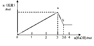 (3)现有溶液B 100mL,逐滴加入NaOH溶液,生成沉淀的物质的量随加入的NaOH的物质的量的关系如下图。