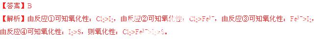 C.Fe3+>Cl2>H2S>I2 D.Cl2>I2>Fe3+>H2S