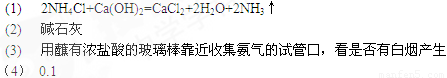 (4)在标准状况下,收集到224mlNH3后,将它溶于水中,恰好得到100ml氨水,则最后所得溶液的物质的量浓度为 mol/L