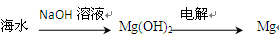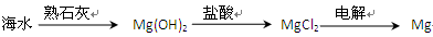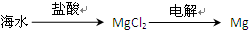 B、海水 MgCl2溶液 MgCl2(熔融) Mg