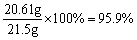 解:(1)根据克拉珀龙方程,计算生成H2的物质的量 由pV=nRT 得 =0.362mol 由反应:Fe+H2SO4(稀)══FeSO4+H2↑ ① 可知,产生0.362mol H2需反应掉0.362mol Fe和0.362mol H2SO4 ∴ 消耗Fe的质量为:m(Fe)´56g×mol-1´0.362mol=20.3g 在溶液里同时进行的反应: FeO3+3H2SO4══Fe2(SO4)3+3H2O ② Fe+Fe2(SO4)3══3FeSO4 ③ 由②和③可推出相关量:FeO3~Fe2(SO4)3~Fe 铁片剩余的质量为:21.5g-20.3g=1.2g其中Fe和Fe2O3的物质的量之比为1∶1 ∵ m( 与Fe2(SO4)3反应时消耗的Fe为 m(Fe)= m(Fe总)=20.3g+0.31g=20.61g w( w(Fe)= (2)求消耗H2SO4的量,由①和②可得出产生H2及Fe2O3与H2SO4作用,消耗H2SO4的质量为: m( 设稀释后H2SO4的质量分数为x% 100mL´1.84g×mL-1´ =(100mL´1.84g×mL-1+400mL´1g×mL-1)´ 解之得x=30.9 设至少需稀释后H2SO4的体积为V V´1.235g×mL-1´30.9%=37.1g 解之得V=97.2mL 答:(1)铁片中锈和铁的质量分数分别为4.1%和95.9%。 (2)与21.5g铁片反应最少需用稀硫酸97.2mL。