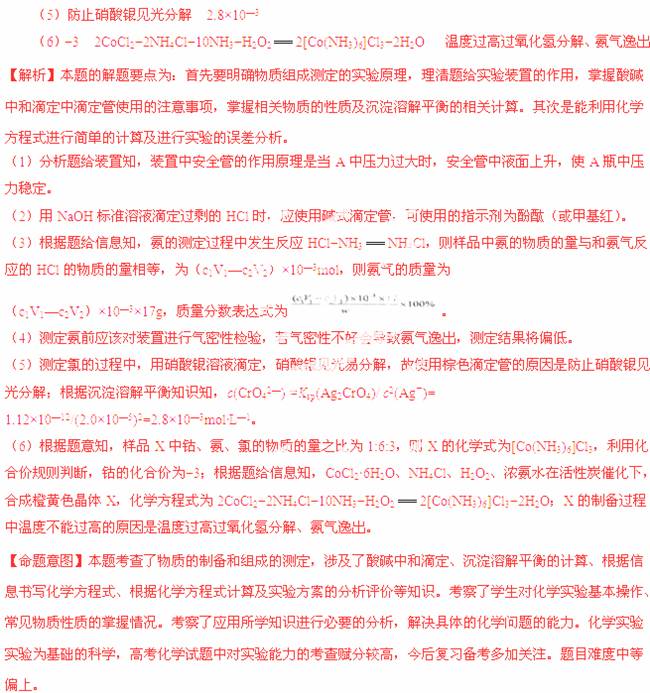 (6)经测定,样品X中钴、氨和氯的物质的量之比为1:6:3,钴的化合价为 ,制备X的化学方程式为 ;X的制备过程中温度不能过高的原因是 。