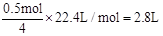 = 0.5mol,因此产生O2的体积为