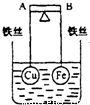 如图所示,杠杆AB两端分别挂有体积相同.质量相等的空心铜球和空心铁球,调节杠杆并使其在水中保持平衡,然后小心地向烧杯中央滴入浓CuSO4溶液,一段时间后,下列有关杠杆的偏向判断正确的是(实验过程中,不考虑铁丝反应及两球的浮力变化)
