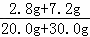 | 解答: | 解:(1)20.0g质量分数为14.0%的KNO3溶液中溶质的质量m1=20.0g×14.0%=2.8g;30.0g质量分数为24.0%的KNO3溶液溶质的质量m2=30.0g×24.0%=7.2g,溶液混合前后溶质、溶液的质量都不变,所以混合液的质量分数为 故答案为:20%; (2)混合溶液的密度为1.15g/cm3,NaCl的质量分数为20%,则混合后NaCl的物质的量浓度c= 故答案为:3.93mol/L. (3)设应溶解的NaCl的物质的量为x, 则有 解得:x=4.27 mol 故答案为:4.27. |