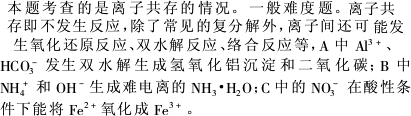 C.H3O+、、Fe2+、Na+ D.K+、、、OH-