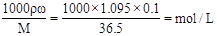某盐酸的密度为1.095g·cm-3,质量分数为10.0%,试计算: