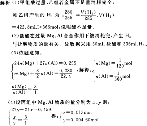 (3)要计算合金中Mg、Al的物质的量之比,题中可做计算依据的数据是________.Mg、Al的物质的量之比是________.