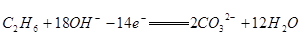一种新型燃料电池,以镍板为电极插入KOH溶液中,分别向两极通乙烷和氧气,电极反应为:C2H6 + 18OH-→2CO