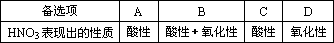 下列反应中硝酸既能表现出酸性又表现出氧化性的是 | |