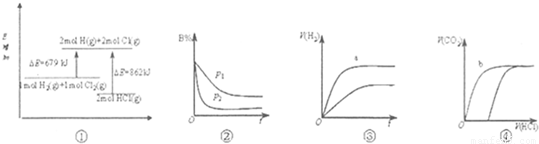 | A、 如图表示化学反应H2(g)+Cl2(g)=2HCl(g)的能量变化,则该反应的反应热△H=+183kJ/mol | B、 如图表示其它条件不变时,反应4A(g)+3B(g)?2C(g)+6D在不同压强下B%(B的体积百分含量)随时间的变化,则D一定是气体 | C、 如图表示体积和c(H+)均相同的HCl和CH3COOH两种溶液中,分别加入足量的锌,产生H2的体积随时间的变化,则a表示CH3COOH溶液 | D、 如图表示中曲线表示反应2SO2(g)+O2(g)?2SO3(g);△H<0 正、逆反应的平衡常数K随温度的变化 |