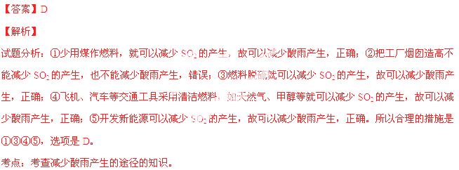 减少酸雨产生的途径可采取下列中的哪些措施:①少用煤作燃料 ②把工厂烟囱