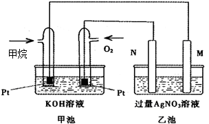 如图是一个甲烷燃料电池工作时的示意图,乙池中的两个电极一个是石墨电极,一个是铁电极,工作时M、N两个电极的质量都不减少,请回答下列问题: