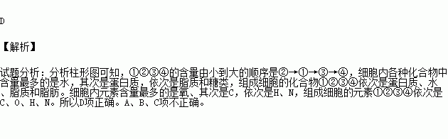 下图表示细胞中各种化合物或主要元素占细胞鲜重的含量,以下按①②③④顺序排列,正确的是