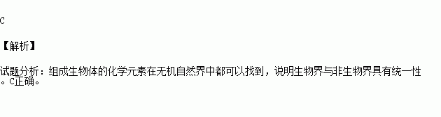 C.组成生物体的化学元素在无机自然界中都可以找到