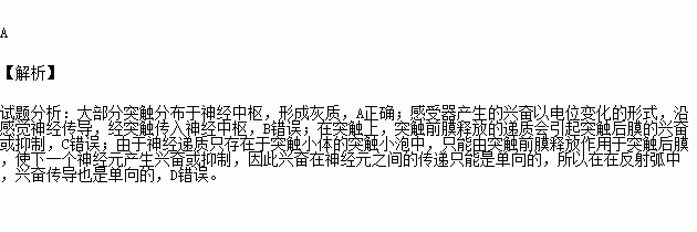 下列有关神经系统内突触分布和兴奋传导的叙述,正确的是