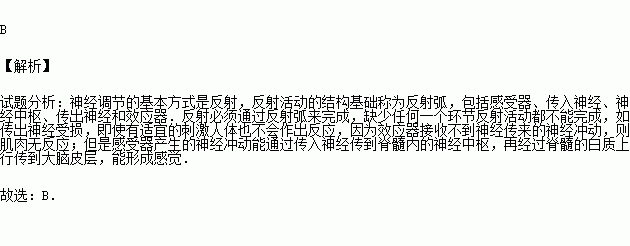 (2015•广州)在肌肉为效应器的反射弧中,假如传出神经受到损伤,而其他部分正常,当感受器受到某种刺激后,机体表现为( )