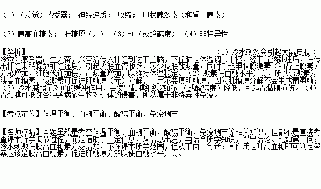 (8分)研究者将空腹的大鼠置于冷水中,探究冷水刺激对大鼠生理功能的影响。