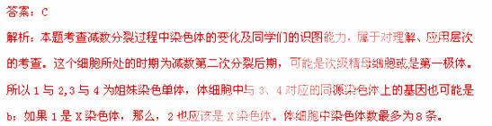 B.该体细胞中染色体数最多为4条
