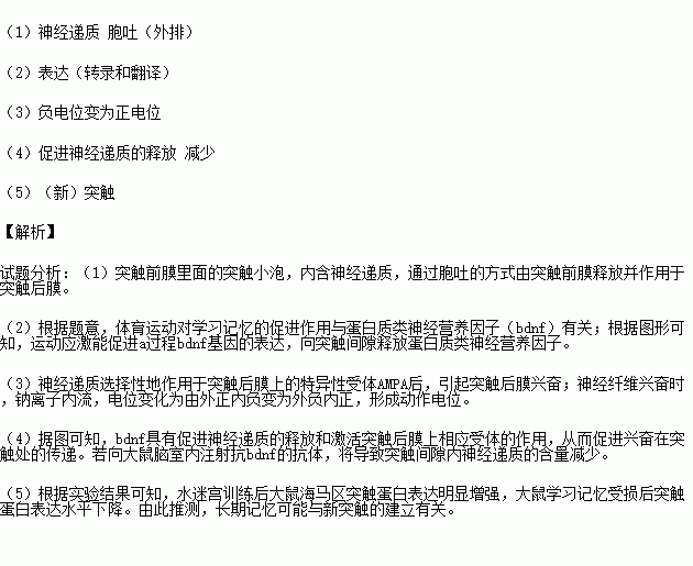 ÏÂͼÊÇÌåÓýÔ˶¯¶Ôѧϰ¡¢¼ÇÒäµÄ´Ù½ø×÷ÓÃÓëµ°°×ÖÊÀàÉñ¾ÓªÑøÒò×Ó£¨bdnf£©¹ØÏµÍ¼½â£¨²¿·Ö£©¡£¾Ýͼ»Ø´ðÏÂÁÐÎÊÌâ¡£