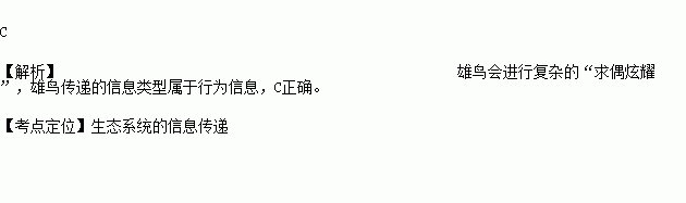 一些鸟类在求偶时的行为非常独特,通常雄鸟会进行复杂的“求偶炫耀”,雄鸟传递的信息类型属于