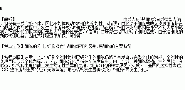 A£®ÓɳÉÈËÆ¤·ôϸ°ûÅàÓý³É΢ÐÍÈËÄÔ£¬ÌåÏÖÁ˶¯Îïϸ°ûµÄÈ«ÄÜÐÔ