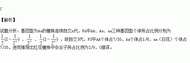 已知某植物的花色有红花(AA和Aa)、白花(aa)两种。现有基因型为Aa的植株组成的种群,该种群的个体连续自交3代,得F3,如不考虑自然选择的作用,则下列关于F3的描述,错误的是