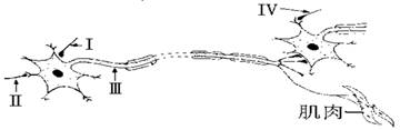 分别刺激下图I、Ⅱ、Ⅲ、Ⅳ四处,不能引起肌肉收缩的是