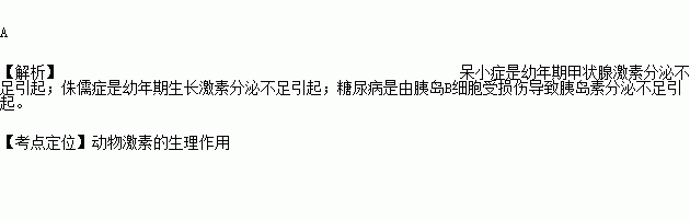 呆小症、侏儒症、糖尿病病人缺乏的激素是 ( )