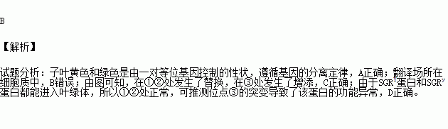 D.研究发现,SGRY蛋白和SGRy蛋白都能进入叶绿体。可推测,位点③的突变导致了该蛋白的功能异常