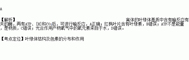 A.离体的叶绿体基质中添加ATP、NADPH和CO2后,可完成暗反应