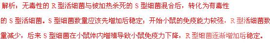 在肺炎双球菌的转化实验中,将加热杀死的S型细菌与R型细菌混合后,注射到小鼠体内,小鼠死亡,则小鼠体内S型、R型细菌含量变化情况最可能是下列哪个图示( ) ![]()