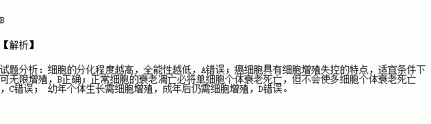 D.幼年个体生长需细胞增殖,成年后不需细胞增殖