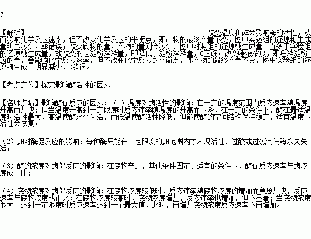 下图表示其他因素均不变,只改变某一因素前后,淀粉溶液在唾液淀粉酶的作用下分解产生还原糖的结果,请据此分析,改变下列哪种因素不能获得改变后的结果?( )