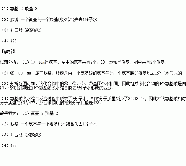 (4)已知该氨基酸相对分子质量之和为477,那么该物质的相对分子质量是 .