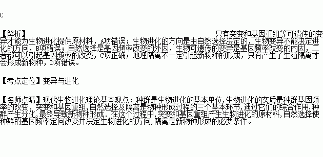 B.生物进化的方向是由自然选择和生物变异共同决定的