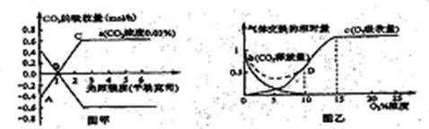 (2)乙图反映细胞呼吸过程中02的吸收及C02的释放情况,图示曲线是在什么条件下测得的? 。