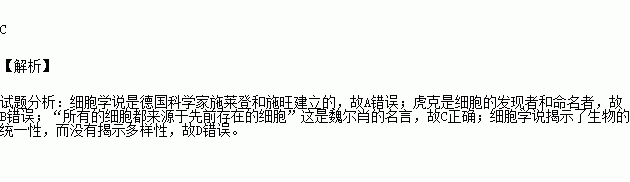 C.德国科学家魏尔肖的名言是“所有的细胞都来源于先前存在的细胞”