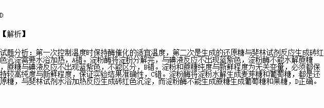 为了研究酶的专一性问题,某同学做了淀粉酶对淀粉和蔗糖的催化作用实验,下列叙述中正确的是 ( )