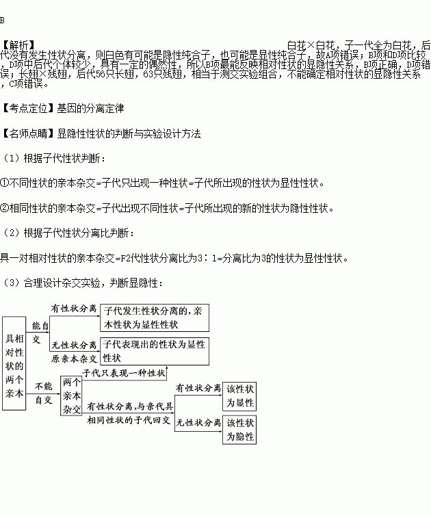 下列杂交组合及其子一代表现型的情况最能反映相对性状的显隐性关系的是