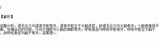 小张因饮酒过多导致语无伦次、走路不稳、呼吸急促,出现这些症状的原因是由于相应中枢受到影响,它们分别是