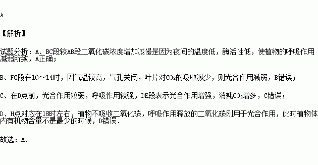 D.H点CO2浓度最低,说明此时植物体内有机物含量最少