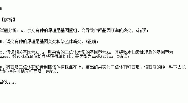 D.将西瓜二倍体花粉传到四倍体植株雌花上,结出的果实为三倍体无籽西瓜