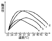 下图为4种不同的酶(分别以a、b、c、d表示)在不同温度下酶活性变化的曲线。在37℃时酶性活性最高的是
