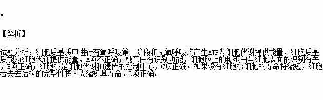D.细胞若失去结构的完整性将大大缩短其寿命