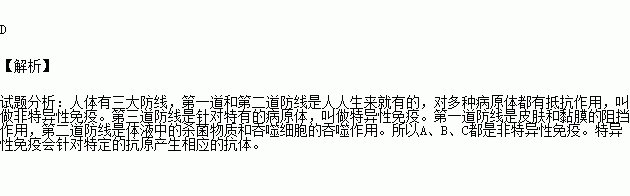 下列哪种现象属于特异性免疫 ( )