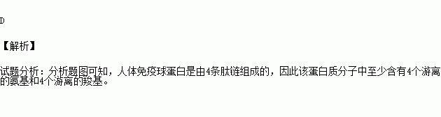 人体免疫球蛋白IgG由4条肽链构成,共有764个氨基酸,则该蛋白质分子中至少含有游离的氨基和羧基数分别是( )