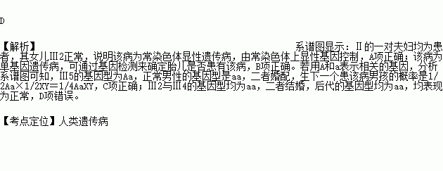 C. Ⅲ5与正常男性结婚,生下一个患该病男孩的概率是1/4