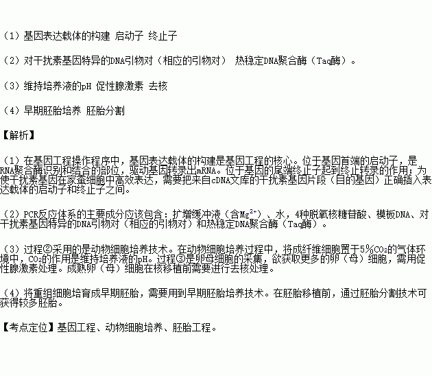 £¨2£©²ÉÓÃPCR¼¼Êõ¿ÉÑéÖ¤¸ÉÈÅËØ»ùÒòÊÇ·ñÒѾµ¼Èë¼Ò²Ïϸ°û¡£¸ÃPCR·´Ó¦ÌåϵµÄÖ÷Òª³É·ÖÓ¦°üº¬£ºÀ©Ôö»º³åÒº£¨º¬Mg2£«£©¡¢Ë®¡¢4ÖÖÍÑÑõºËÌǺËÜÕËᡢģ°åDNA¡¢ ºÍ ¡£