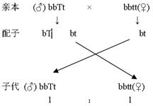 (2)在一次育种实验中将玉米甲品种(bbtt)与乙品种(BBTT)间行种植,花期自由授粉,待籽粒成熟分开收种,第二年播种甲品种所结种子(F1),F1花期也自由授粉,得到籽粒(F2),预测F2的性别及比例为: